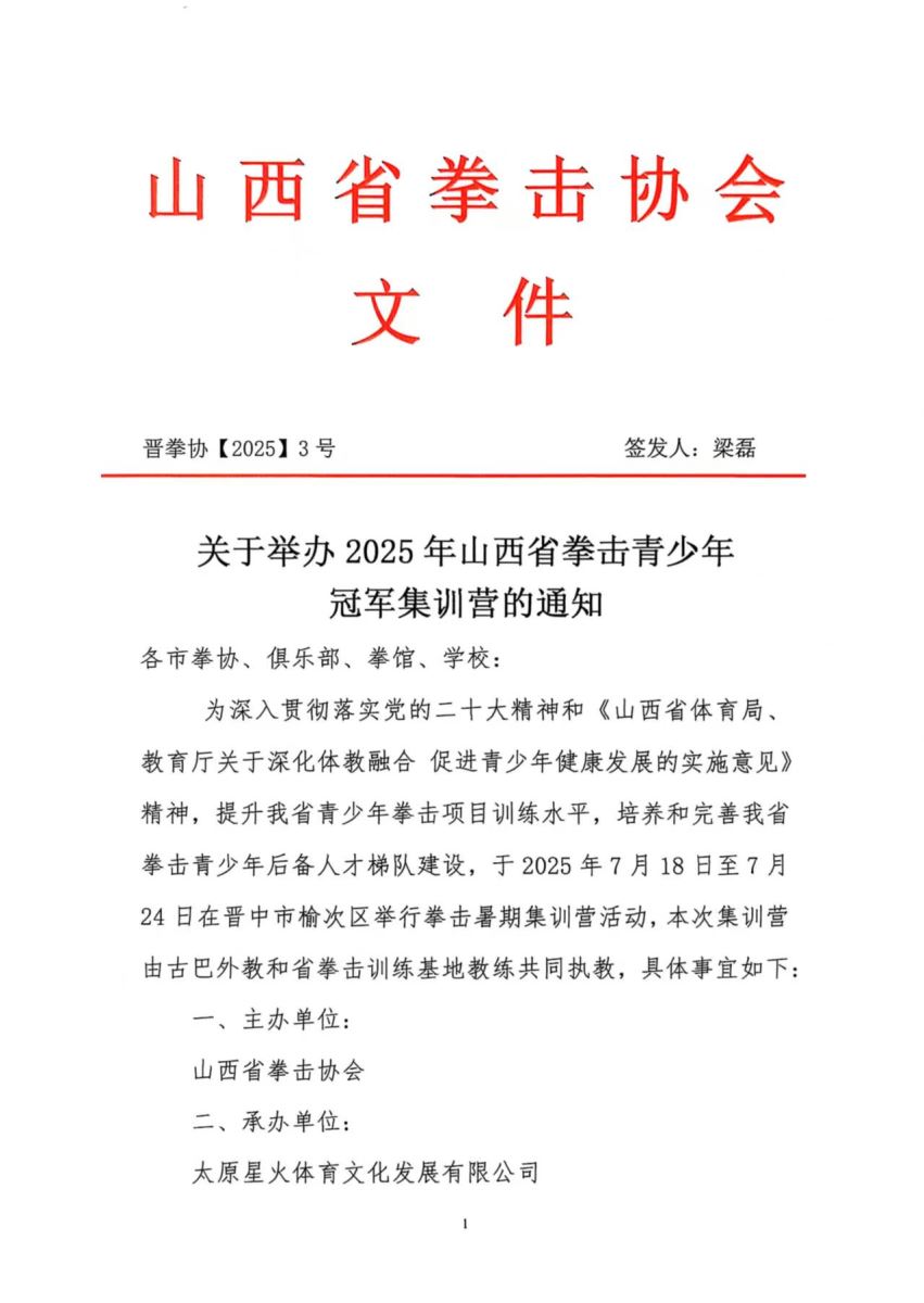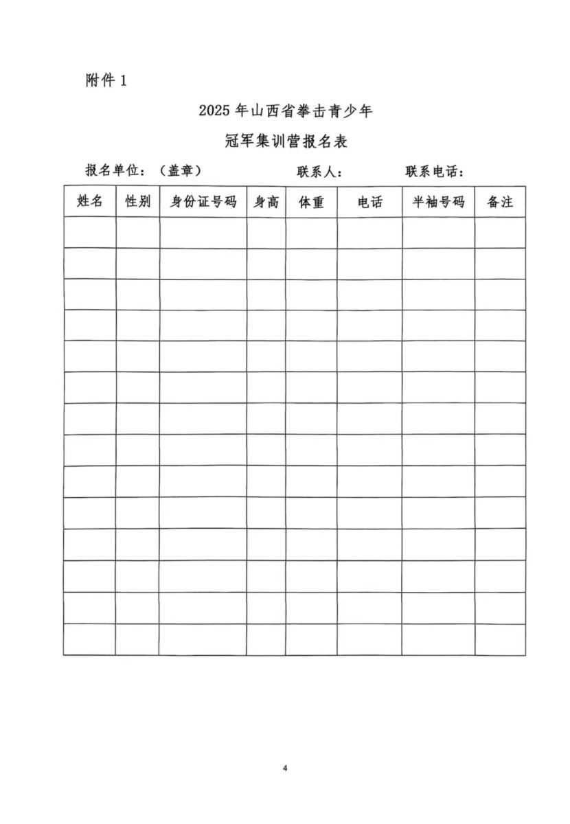 关于举办2025年山西省拳青少年冠军集训营的通知